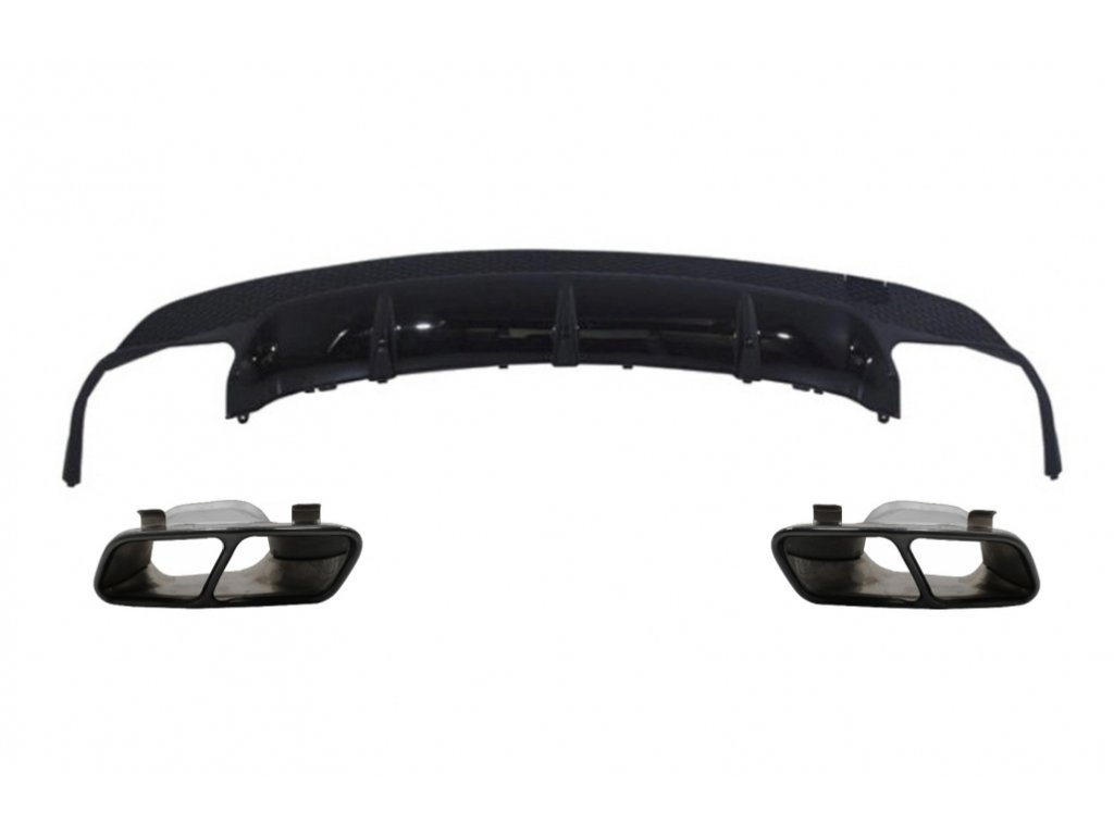 Rear Diffuser with Exhaust Muffler Tips Black suitable for Mercedes CLA W117 X117 Shooting Brake (2013-2018) Sport Pack