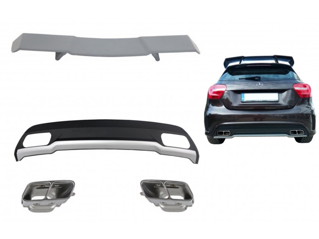 Rear Diffuser with Exhaust Tips Tailpipe & Trunk Spoiler for MERCEDES A-Class W176 (2012-2018) Sport Pack