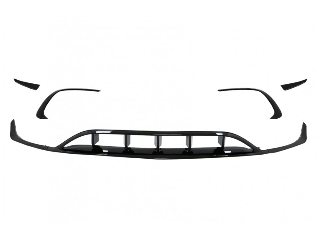 Rear Diffuser with Exhaust Tips Tailpipe with Splitters Fins Aero suitable for Mercedes A-Class W176 (2015-2018) Sport Pack All Black