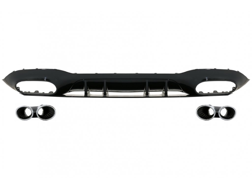 Rear Diffuser with Front Side Vents and Flaps Side Fins suitable for Mercedes A-Class V177 Sedan (2018-2022) Chrome Exhaust