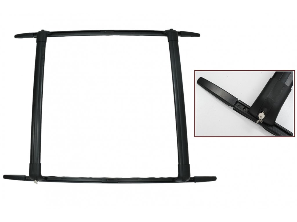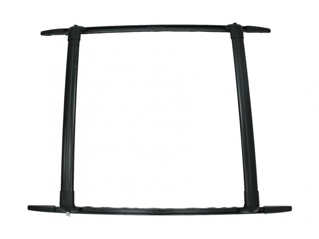 Cross Bars system equipped with dedicated fitting accessories and key locked anti theft system.Finish: Black