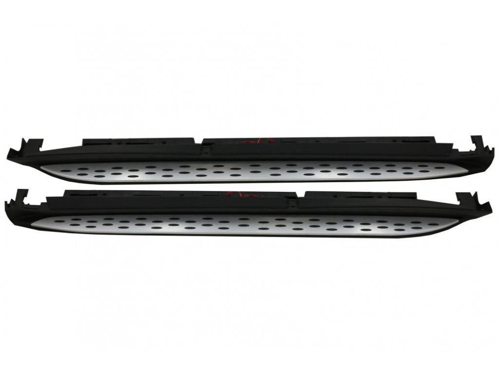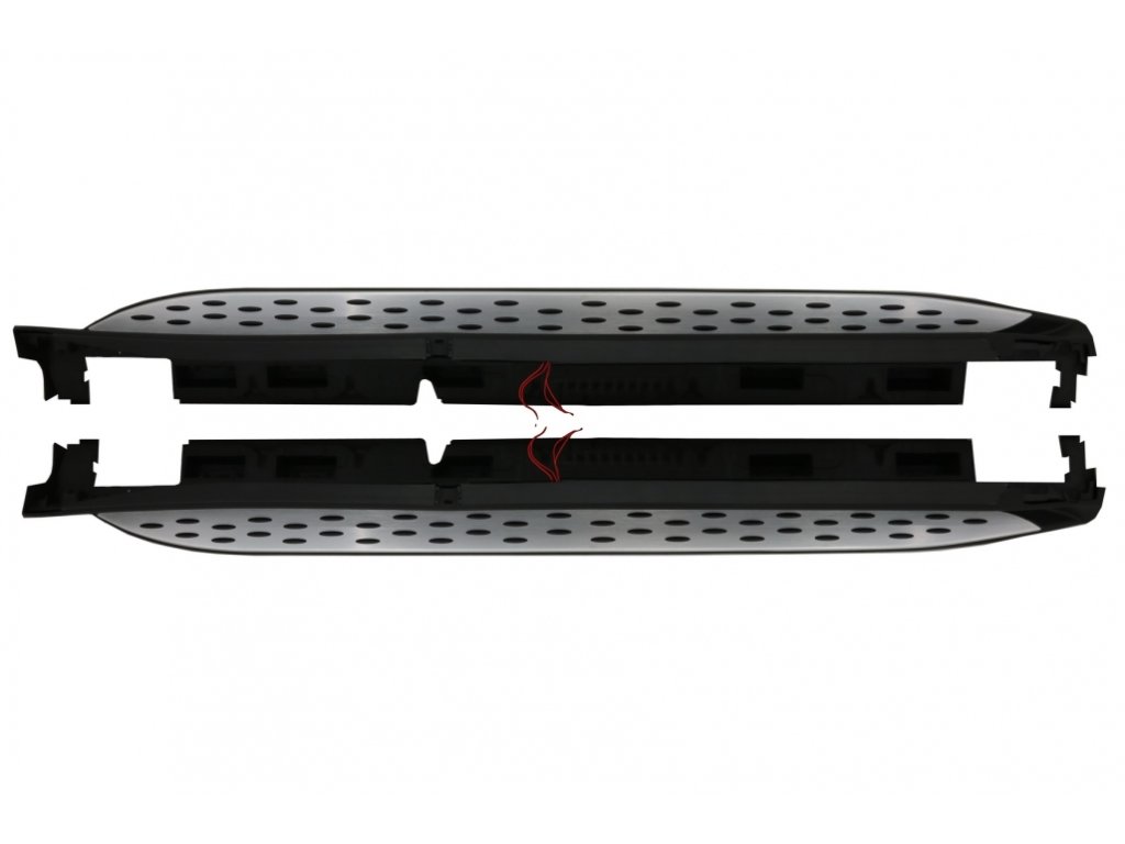 Running boards, side steps made of high-quality stainless steel, aluminum, and PVC. These side steps are equipped with LED courtesy lighting system.Side steps are also available without the LED lightning system, code: RBMBGLX166