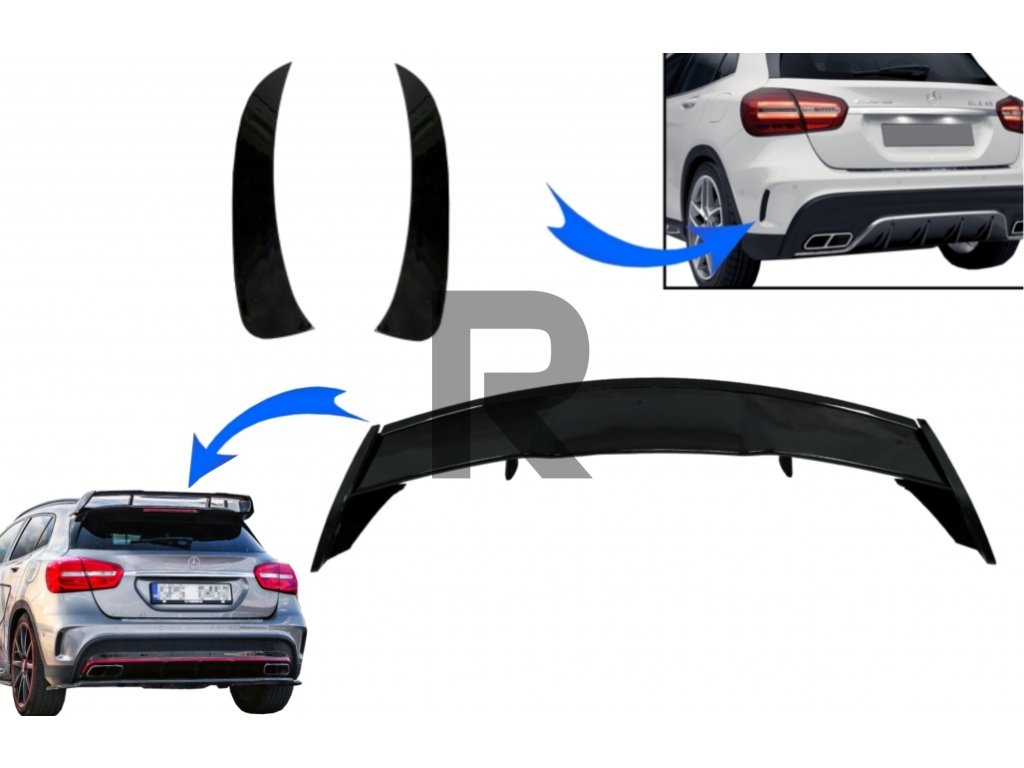 Spojler na veko kufra s bočnými lamelami zadného nárazníka, vhodné pre Mercedes GLA X156 GLA45 (2014-2019)