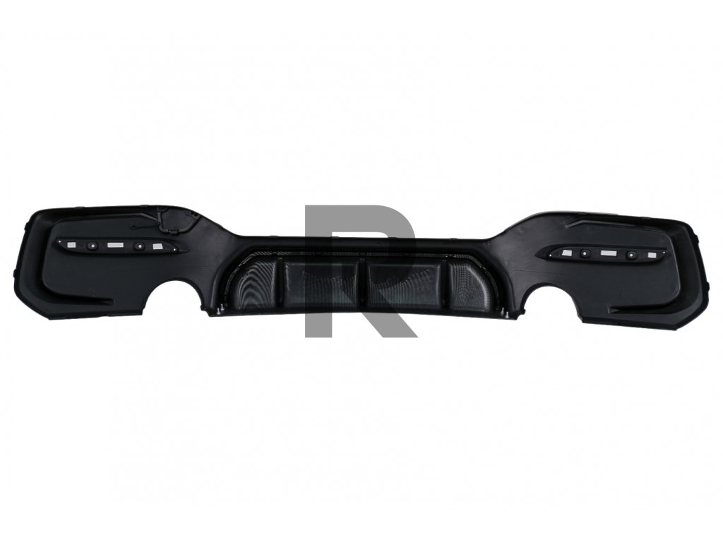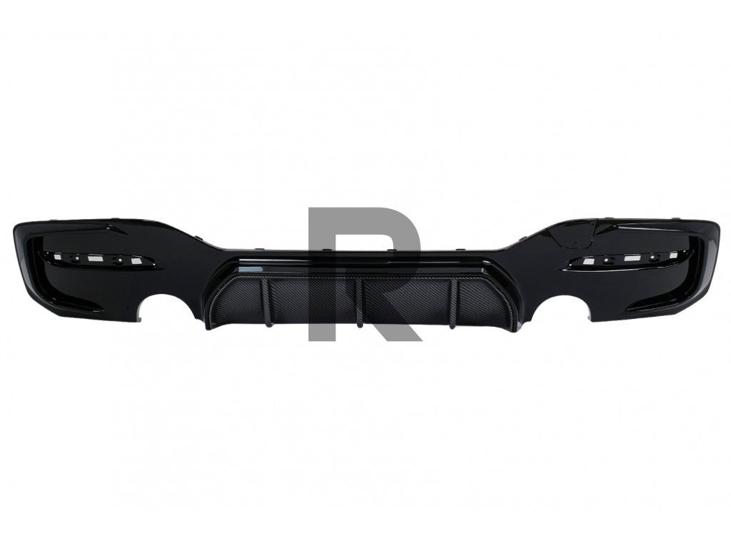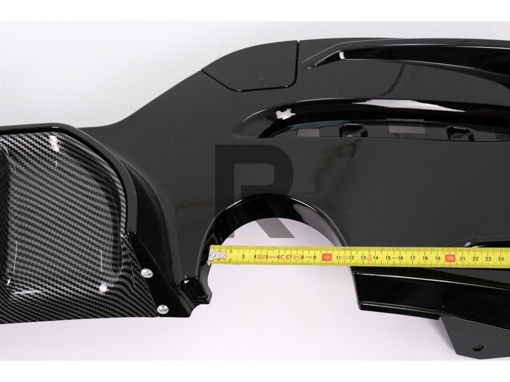 Spojler zadného nárazníka, difúzor, dvojitý jednoduchý vývod, vhodný pre BMW radu 1 F20 F21 LCI (2015-06.2019), stredová vložka, karbónový vzhľad