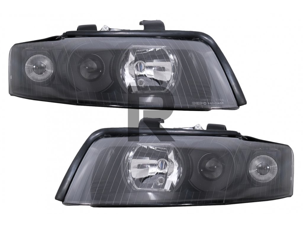 Svetlomety vhodné pre Audi A4 B6 (2000-2004) s pravostranným alebo ľavostranným pohonom, čierne