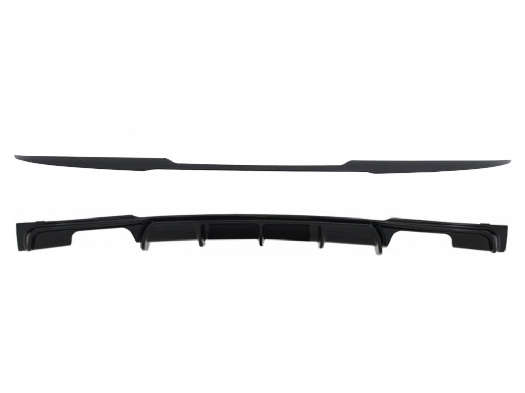 Trunk Boot Lip Spoiler with Rear Bumper Spoiler Valance Diffuser Double Outlet suitable for BMW 3 Series F30 (2011-2019) M4 CSL Performance Design Piano Black