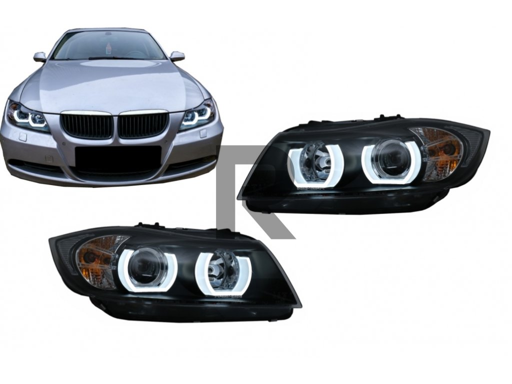 U-LED 3D halogénové svetlomety vhodné pre BMW radu 3 E90 Limousine E91 Touring (03.2005-08.2008) LHD čierne