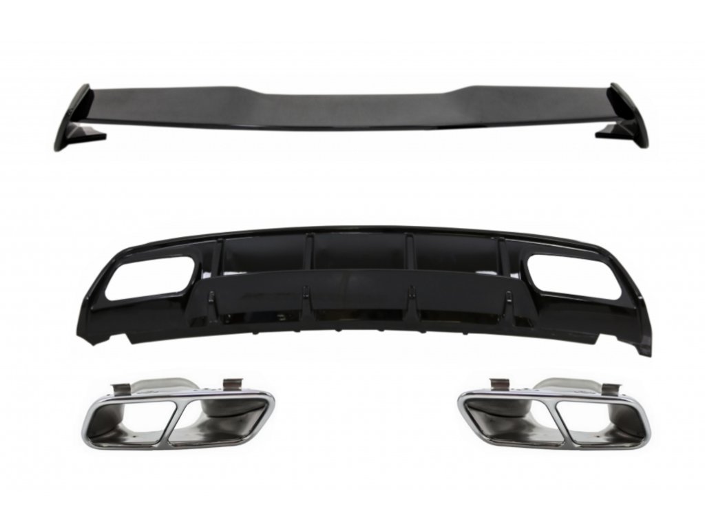 Valance Rear Diffuser Suitable for MERCEDES W176 A-Class (2012-2018) with Exhaust Muffler Tips and Roof Boot Lid Spoiler A45 Design Facelift