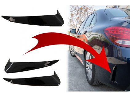 Rear Bumper Flaps Side Fins Flics suitable for Mercedes C Class W205 (2014-2020) Piano Black