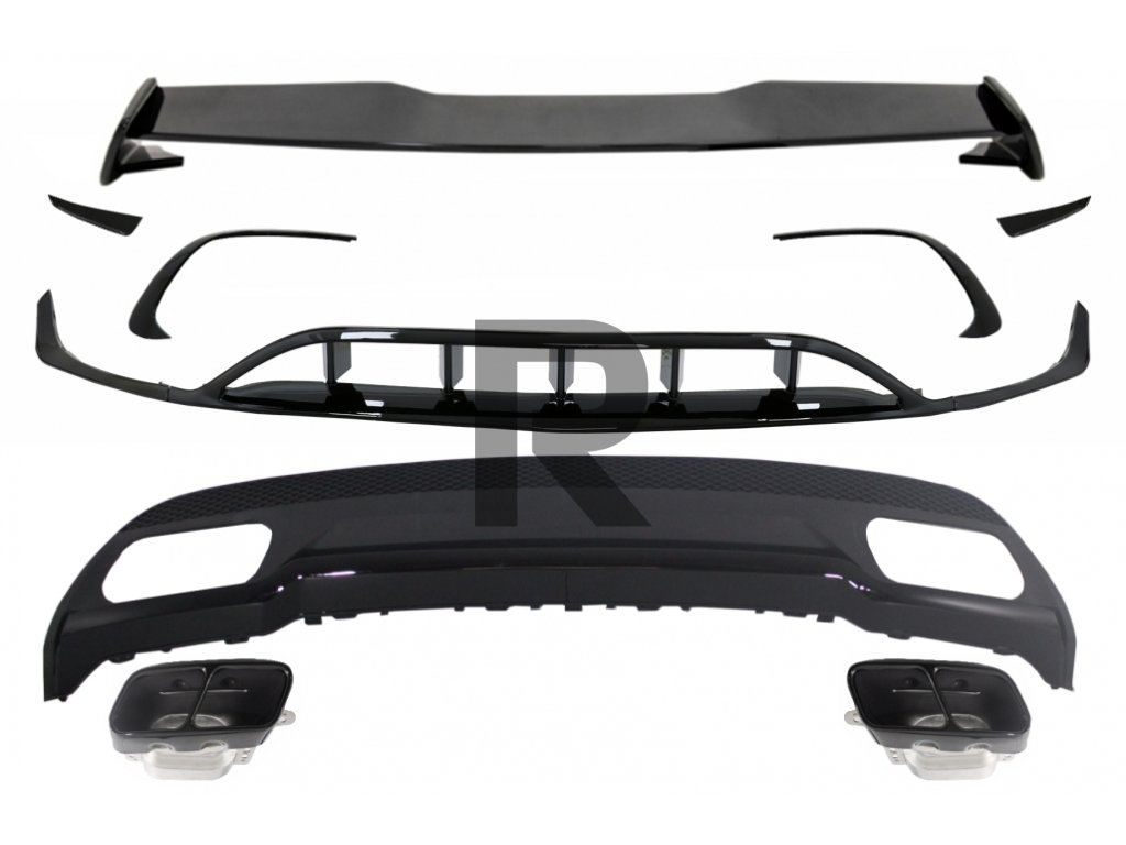 Zadný difúzor a koncovky výfuku, výfuková rúra s rozdeľovacími rebrami, aerodynamický spojler a spojler na veko kufra, vhodný pre MERCEDES-BENZ Trieda A W176 (2015-2018), športový paket, všetky čierne