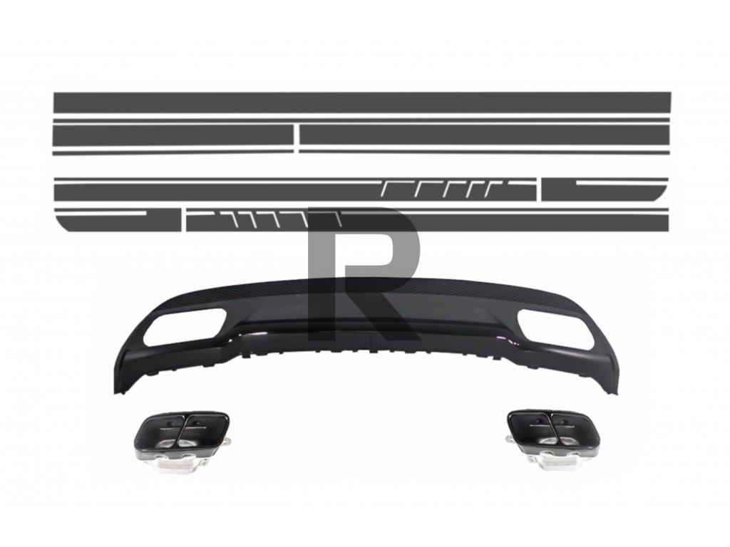 Zadný difúzor a koncovky výfuku vhodné pre Mercedes Trieda A W176 (2012-up) Sport Pack s bočnými polepkami, vinylová farba tmavosivá