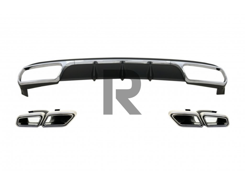 Zadný difúzor s chrómovými koncovkami tlmiča výfuku, vhodný pre Mercedes E Class W212 Facelift (2013-2016), iba pre štandardný nárazník
