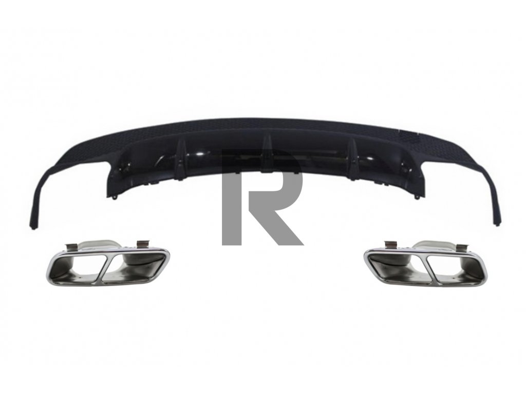 Zadný difúzor s chrómovými koncovkami tlmiča výfuku vhodný pre Mercedes CLA W117 X117 Shooting Brake (2013-2018) Sport Pack