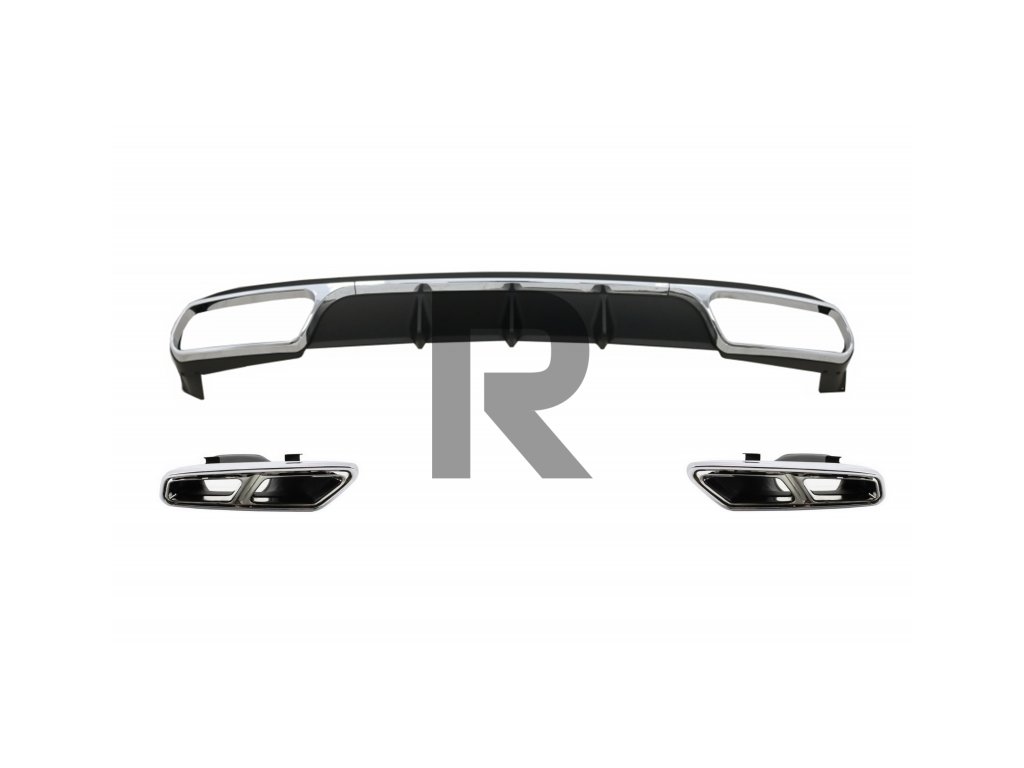 Zadný difúzor s chrómovými koncovkami tlmiča výfuku vhodný pre Mercedes Trieda E W212 Facelift (2013-2016) E65 Design iba pre štandardný nárazník