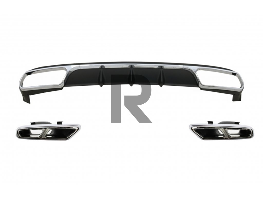 Zadný difúzor s chrómovými koncovkami tlmiča výfuku vhodný pre Mercedes Trieda E W212 Facelift (2013-2016) E65 Design iba pre štandardný nárazník