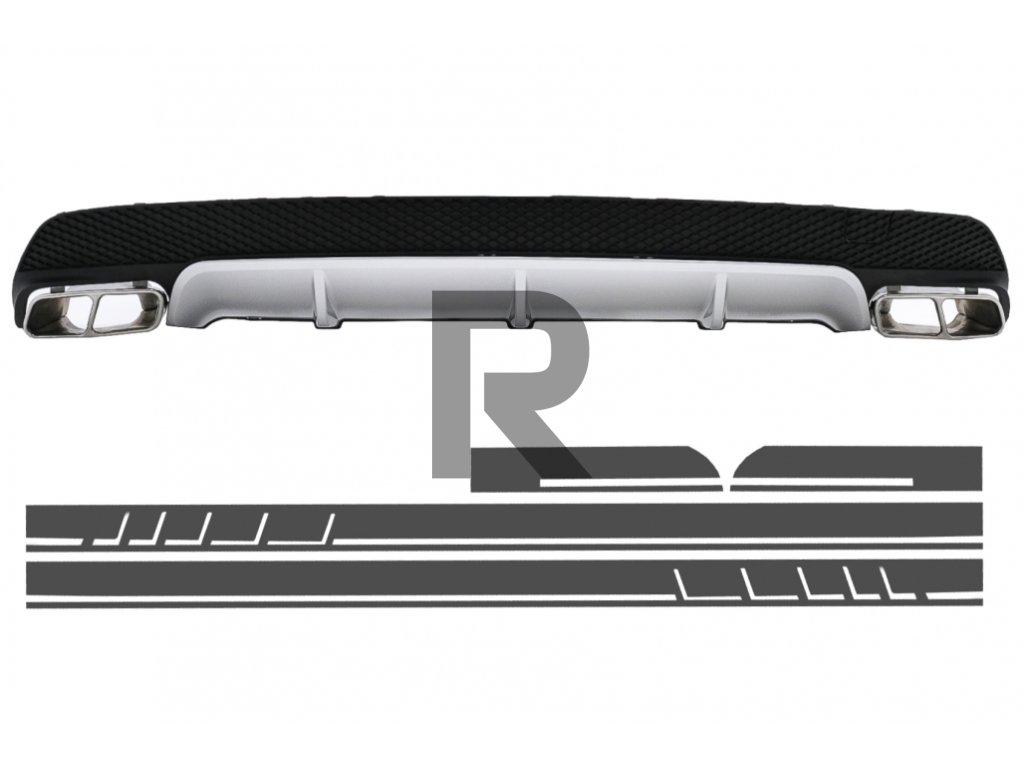Zadný difúzor s koncovkami výfuku a bočnými polepmi, tmavosivý vinylový štítok, vhodný pre Mercedes CLA W117 (2013-2016), športový balíček