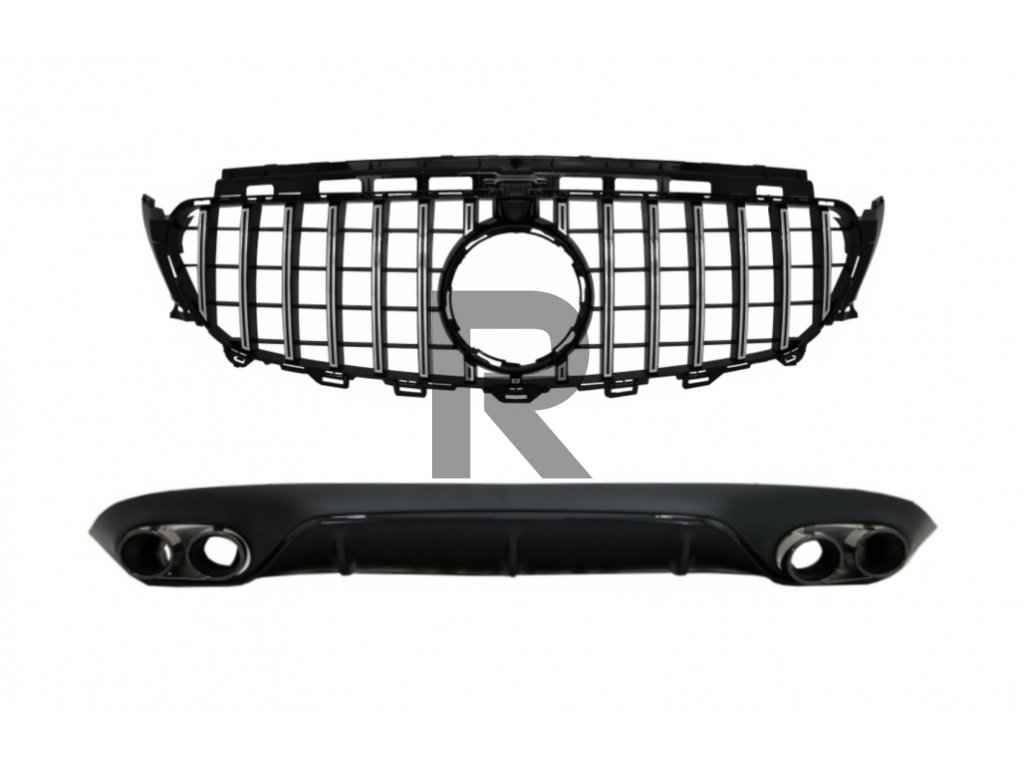 Zadný difúzor s koncovkami výfuku a centrálnou mriežkou s 360° kamerou vhodný pre Mercedes Triedy E C238 AMG Sport Line (2016+) E53 GT-R Design
