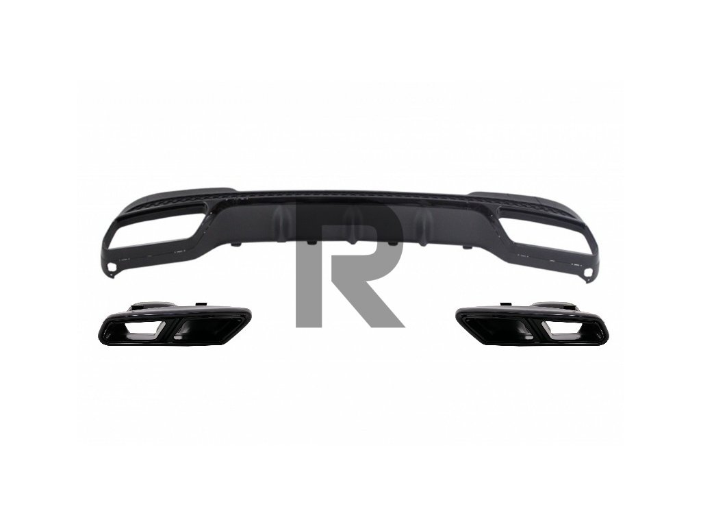 Dvojité štvorcové koncovky výfuku vľavo a vpravoDifúzor zadného nárazníka s lištami a vložkou