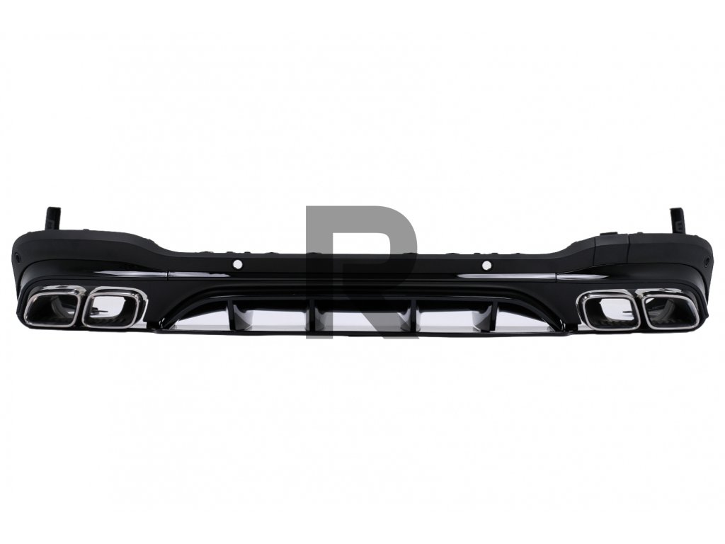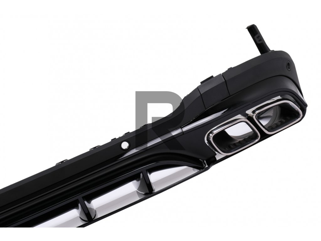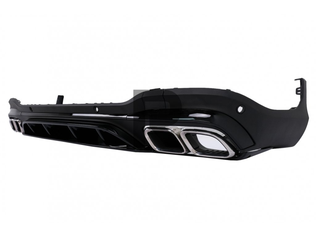 Difúzor vzduchu do zadného nárazníka, dizajn GLC63, čiernyDifúzor vzduchu do zadného nárazníka vyrobený z vysoko kvalitného ABS plastu s dvojitými vývodmi pre koncovky dvojitého tlmiča výfuku a otvory pre PDC